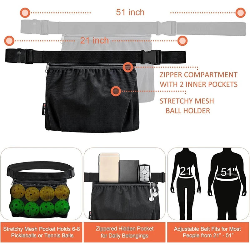 No need to constantly pick up balls on the court - this bag comes with a high-quality stretch mesh pocket that can easily hold 8 tennis balls or 6-8 pickle balls or 30-40 ping pong balls or 10-20 golf balls, and Fits pockets. It also comes with a large capacity zippered pocket for extra storage such as smartphones of almost any size, referee items or other accessories.