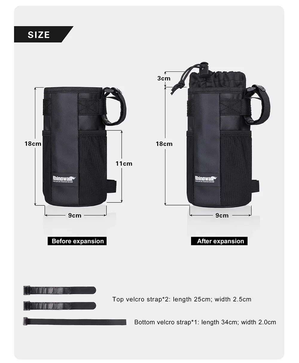 【Drain hole】Ensure that there will be no ponding in rainy days 【Net side pocket】Convenient storage mobile phone,tools, energy bars, etc. More capacity, top heightening design to hold a higher bottle.【Tightening drawstring】Stable and easy to take out.