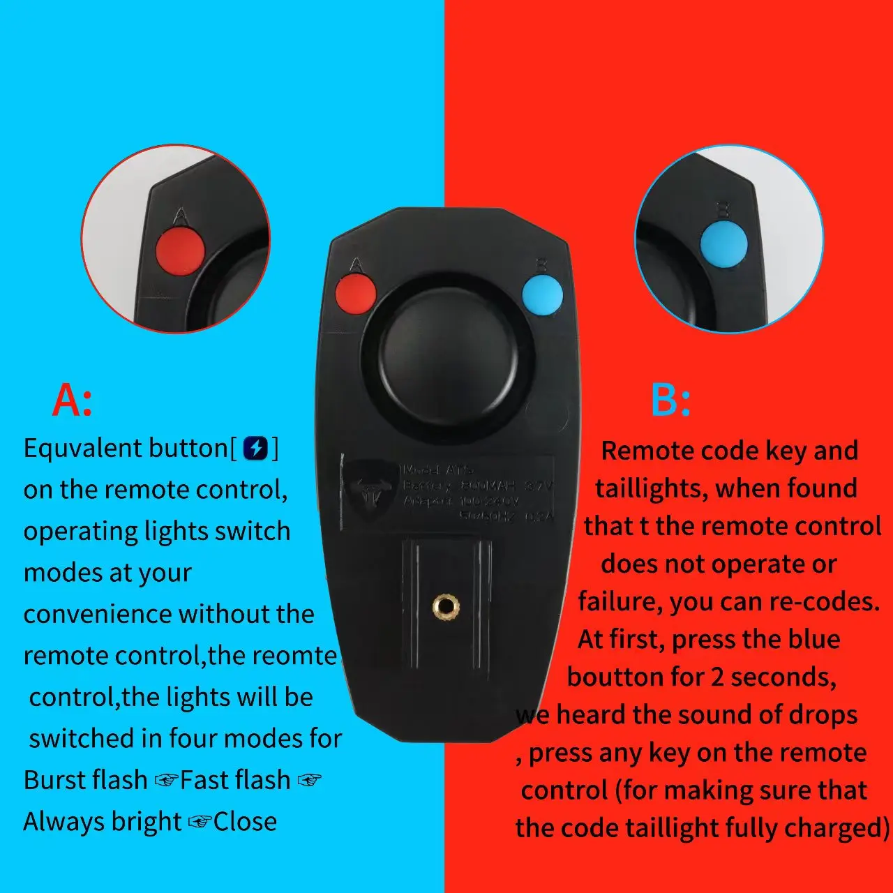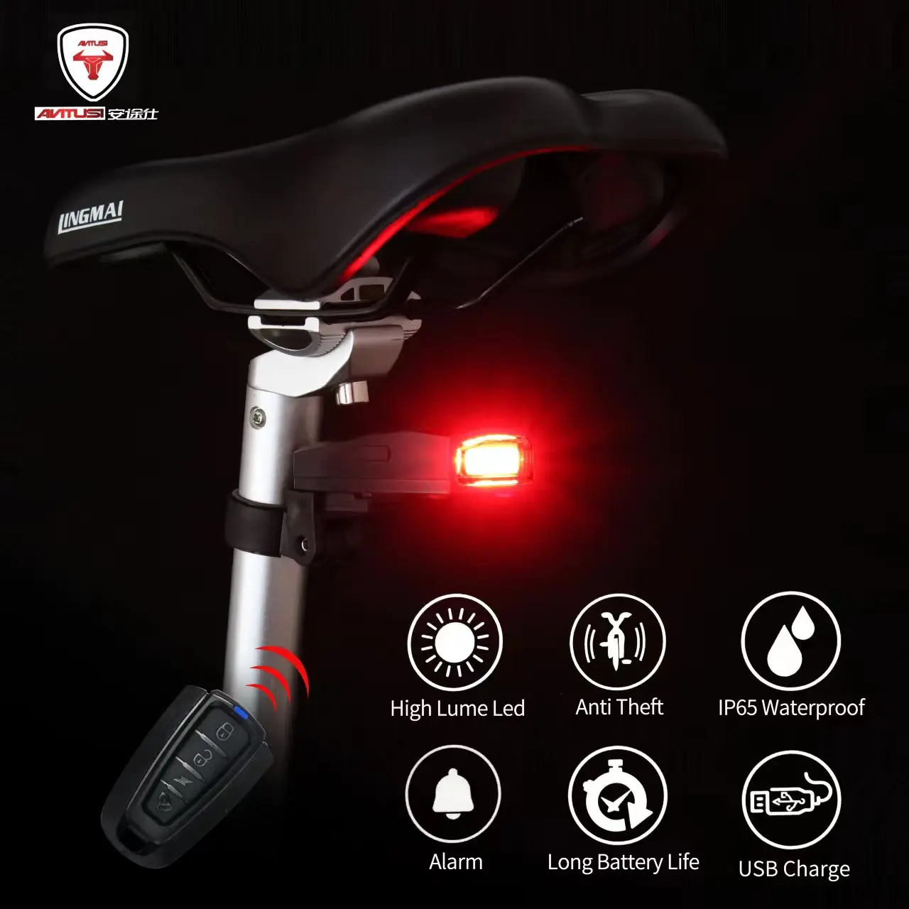 A6 Bicycle Rear Light Anti-theft Alarm USB Charge Wireless Remote Control LED Tail Lamp Bike Finder Lantern Horn Warning Light-WAYBIKER