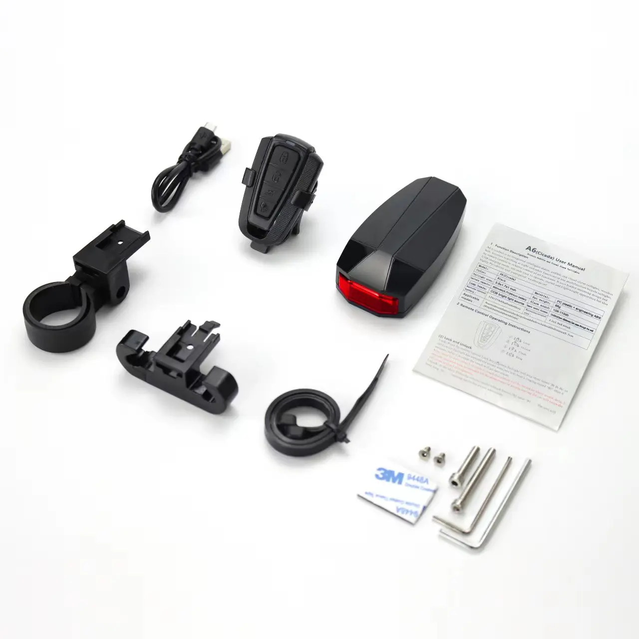 A6 Bicycle Rear Light Anti-theft Alarm USB Charge Wireless Remote Control LED Tail Lamp Bike Finder Lantern Horn Warning Light
