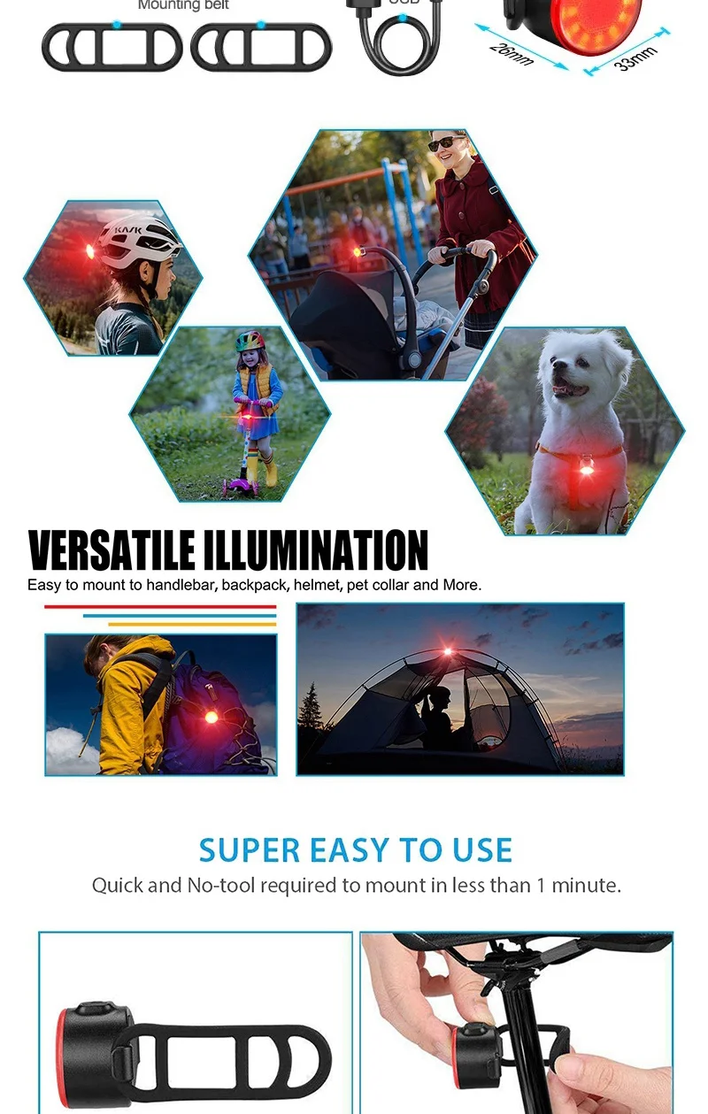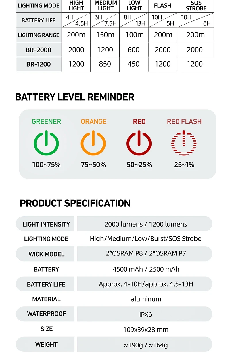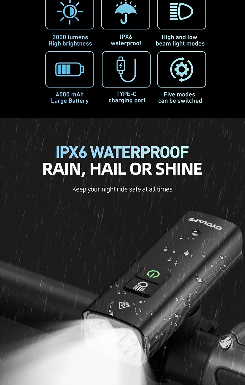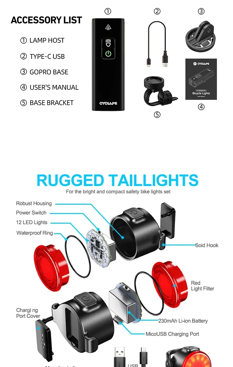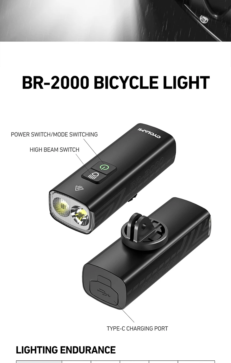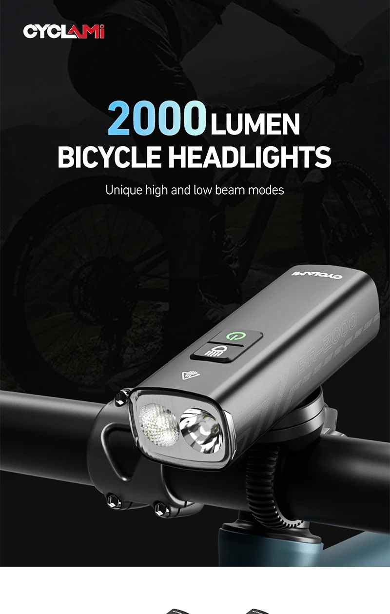 CYCLAMI Bicycle Light BR 2000 1200 Lumens LED Rechargeable Set Road MTB Bike Front Back Headlight Lamp Flashlight Cycling Light