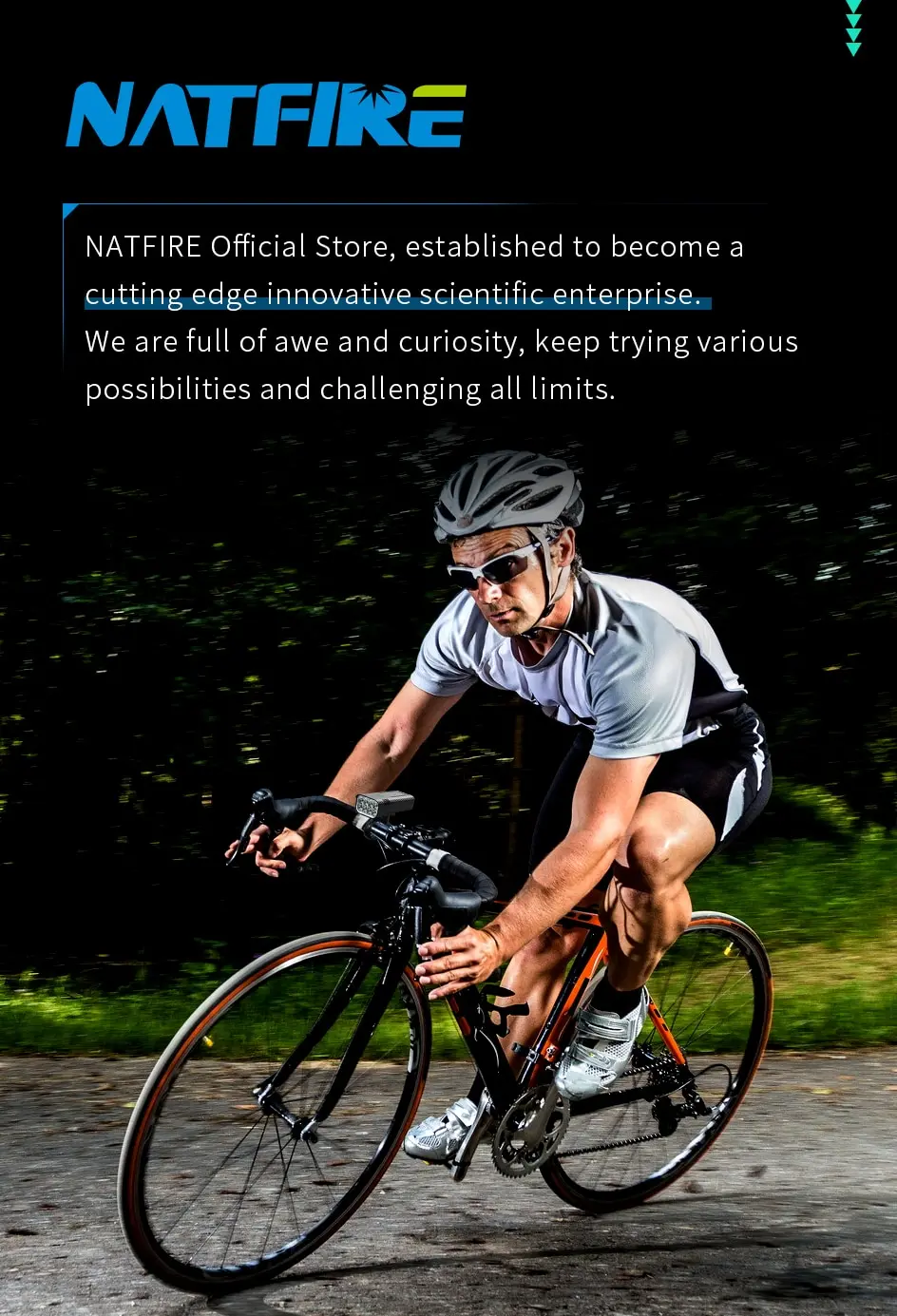 ✔【USB RECHARGEABLE】Save your time to replace batteries every week. Never waste money on batteries anymore. Natfire bike light and optional red rear light come with a CHARGING CABLE that charges from your computer, power bank or any device with a USB port. 10000mAh large capacity and Built-in intelligence IC can prevents overcharge or over discharge and extend battery life. This bike headlight has a Runtime of 7+ hours on the highest setting and Runtime of 15+ hours on the lowest setting. (Depends on the battery you choose, larger battery capacity, longer runtime)