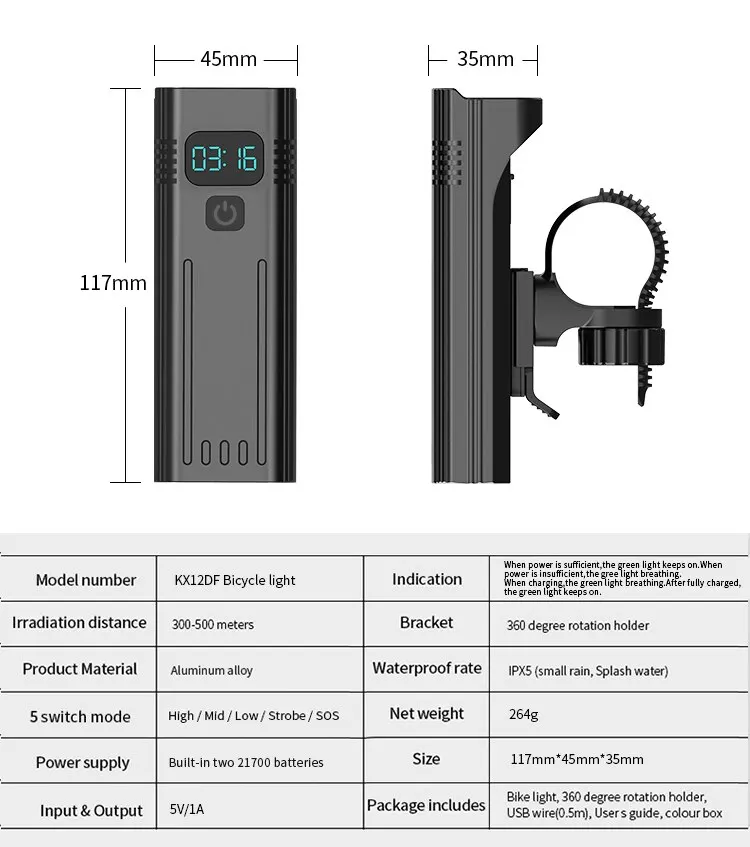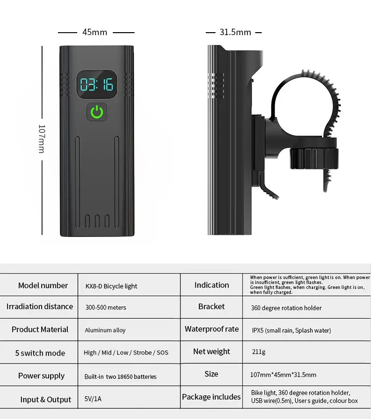 Model: Bicycle Light NKX8D Pro - Digital Display Version