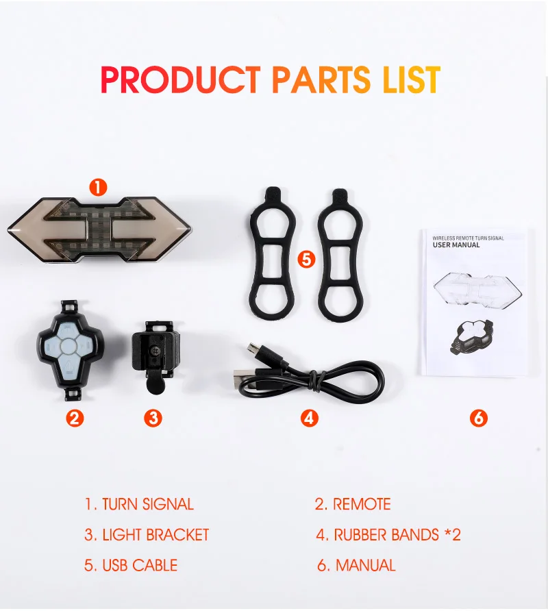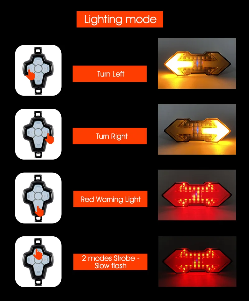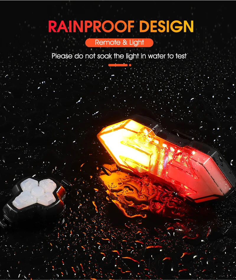 Remote control indicator light: lightweight and durable bicycle tail light, which can be installed on all bicycles, children's bicycles, and adult bicycles. It can also be used as helmet light, backpack light, warning light, etc. The tail light is made of waterproof material to ensure safe use in rainy days.