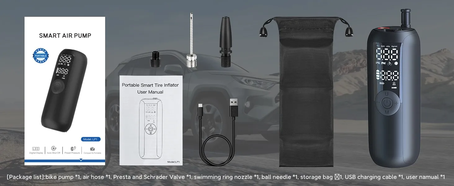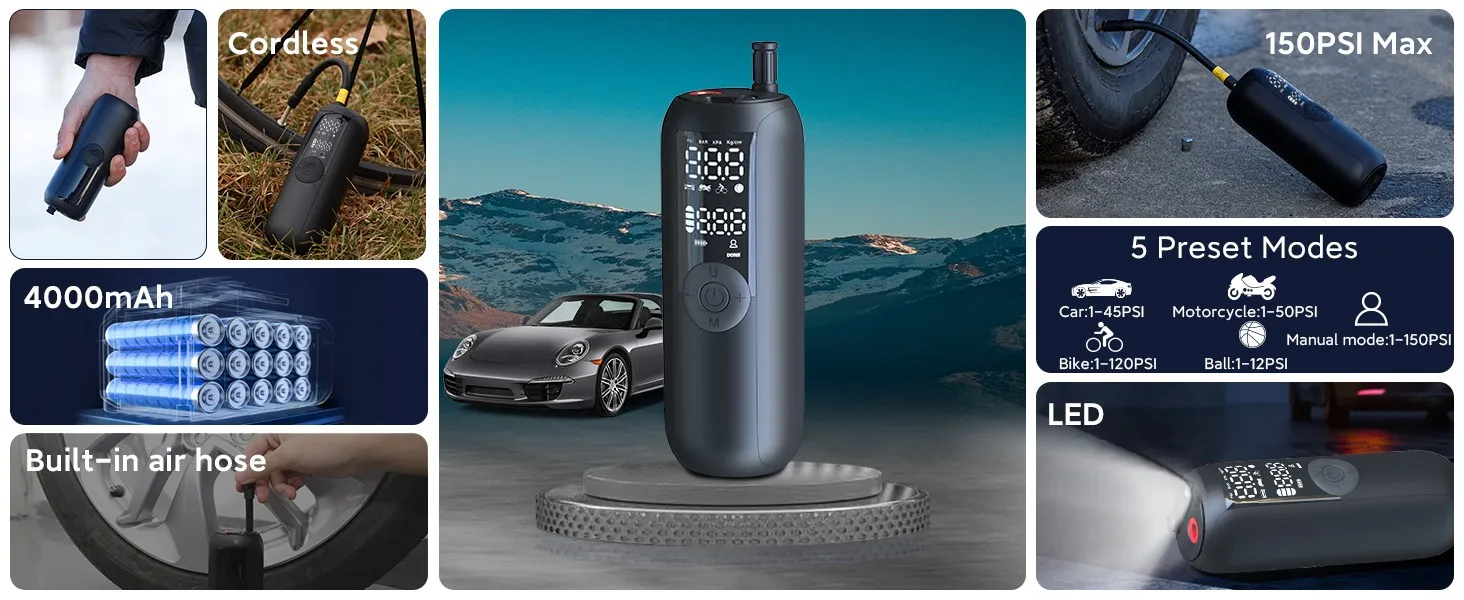 Woowind LP1 Tire Inflator and Mini Bike Pump, Portable Air Compressor for Car, Bike, 150 PSI, Auto Shut-Off