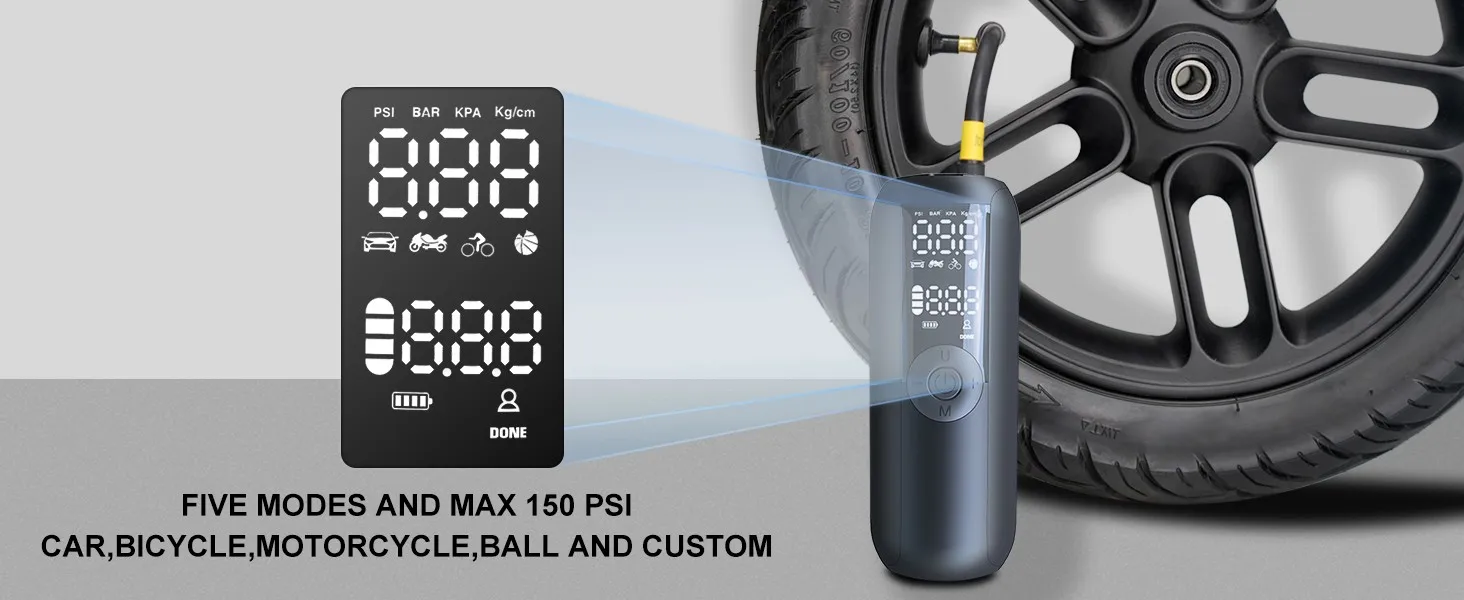 Woowind LP1 Tire Inflator and Mini Bike Pump, Portable Air Compressor for Car, Bike, 150 PSI, Auto Shut-Off-WAYBIKER