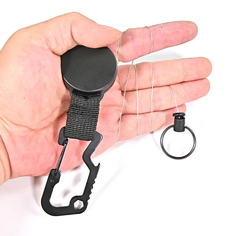 Outdoor Automatic Retractable Wire Rope Anti-theft Tactical Keychain Telescopic Keychain Retractable Hook Tool for Cycling