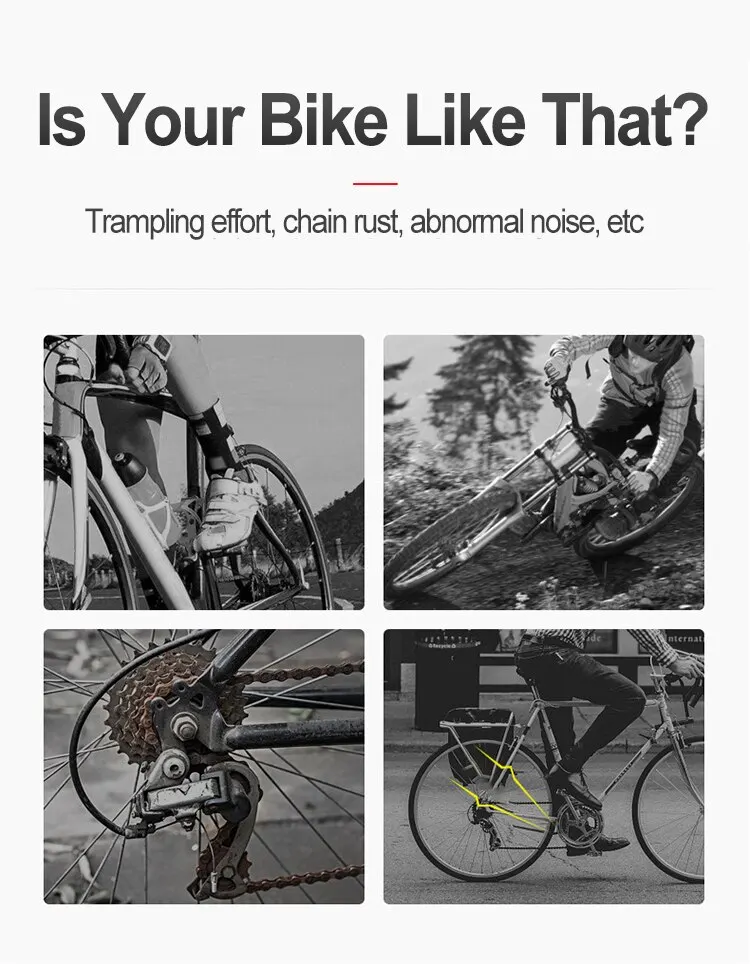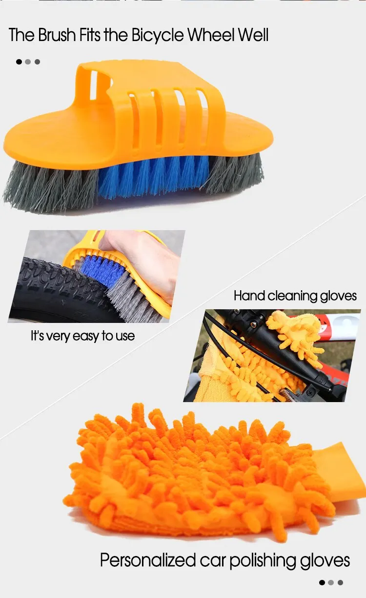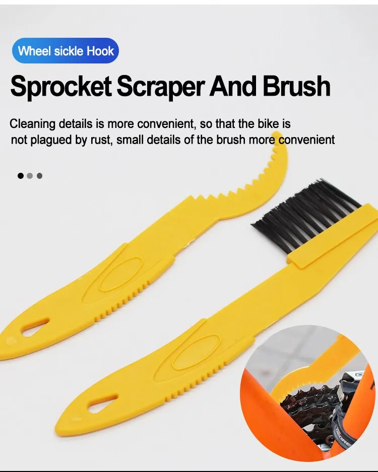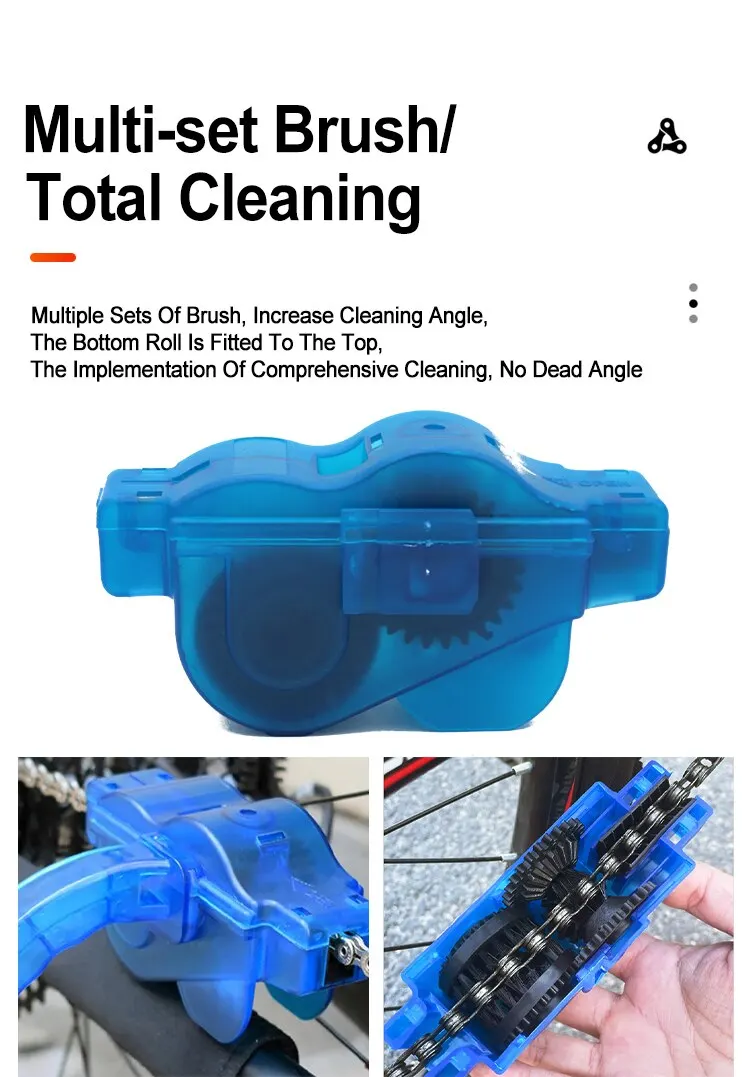 1.Quickly and easily cleans chains, freewheel cogs, and chainrings.
