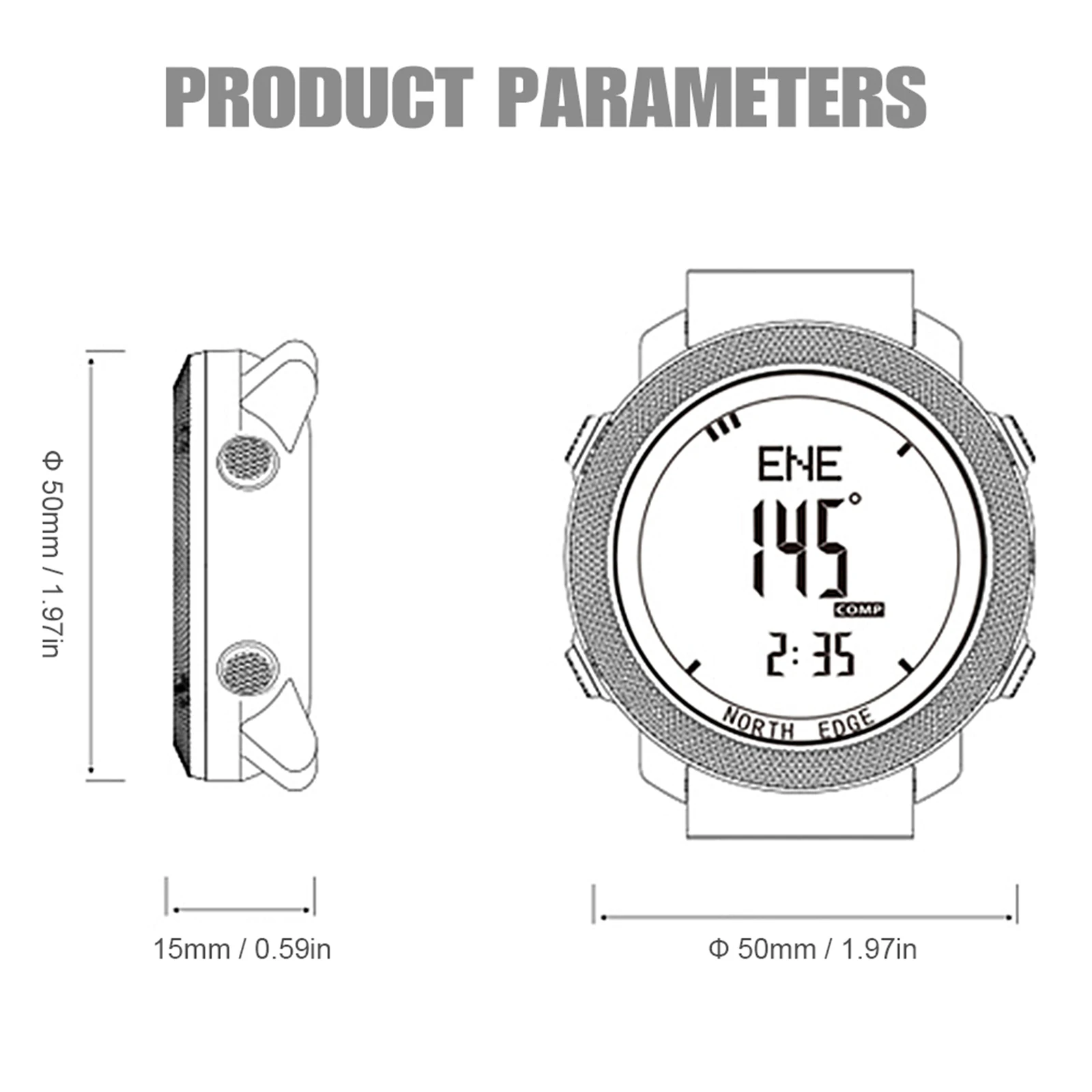 50mm large, easy-to-read dial; breathable, adjustable watch band.
