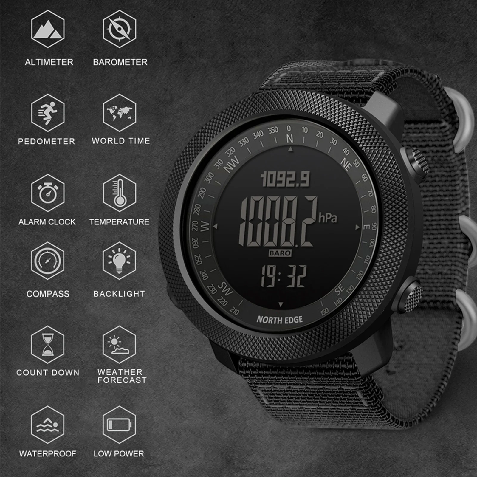 This digital sports watch integrates many functions: altimeter, barometer, thermometer, weather forecast, compass, stopwatch, countdown timer, pedometer, world time, alarm clock, 50m waterproof, and more. It is a great gift for those who love outdoor sports.