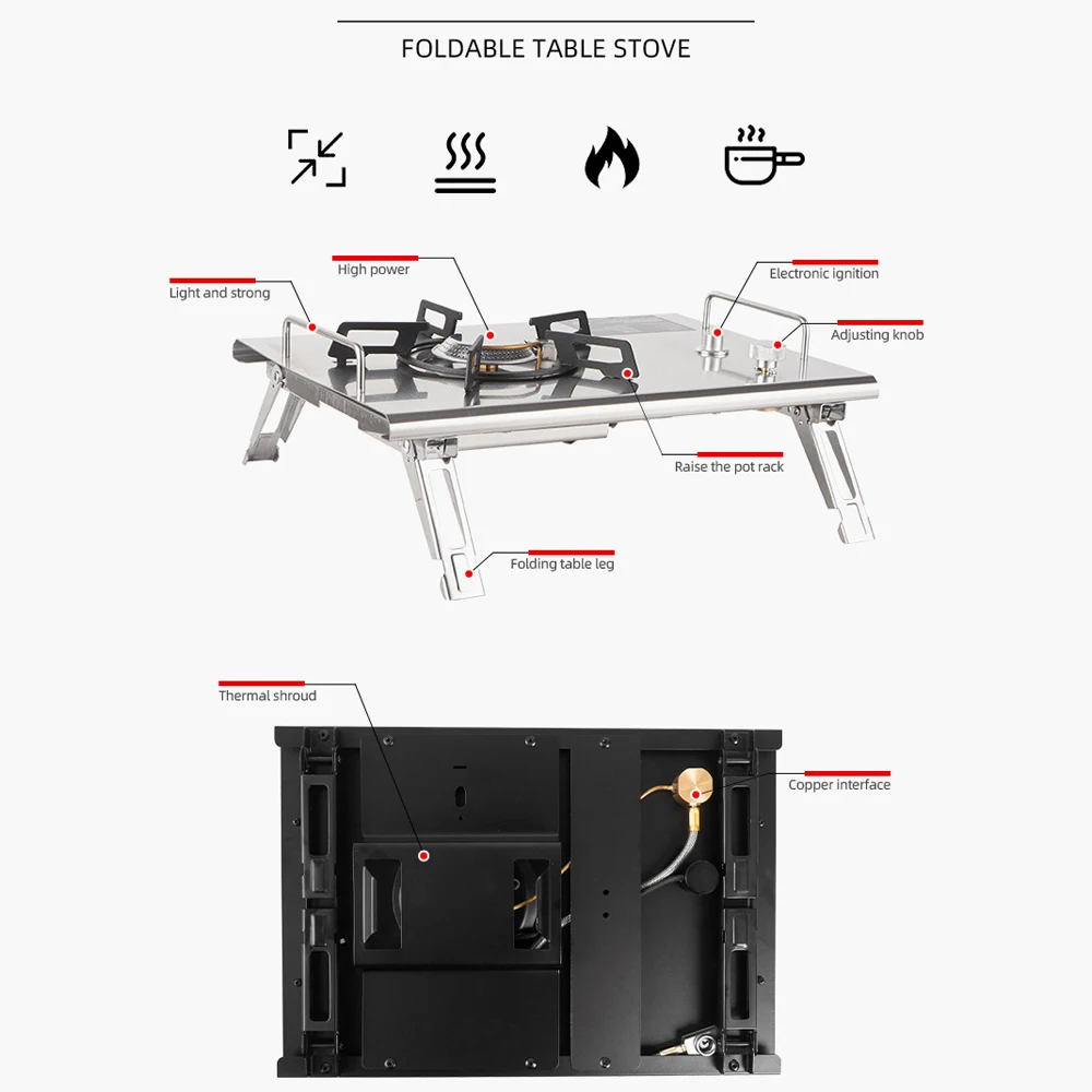 This outdoor portable furnace is a versatile and convenient option for your outdoor activities. With the ability to be both tabletop and embedded, it offers a powerful firepower and easy-to-use design. Its foldable design makes it perfect for on-the-go use, and it's sure to be a reliable companion on your outdoor excursion.