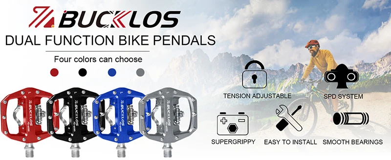 BUCKLOS Pedals Contact MTB Bike Cleat Pedal Flat Dual Function Mountain Bike Pedal Fit SPD System Bearing Bicycle Platform Pedal