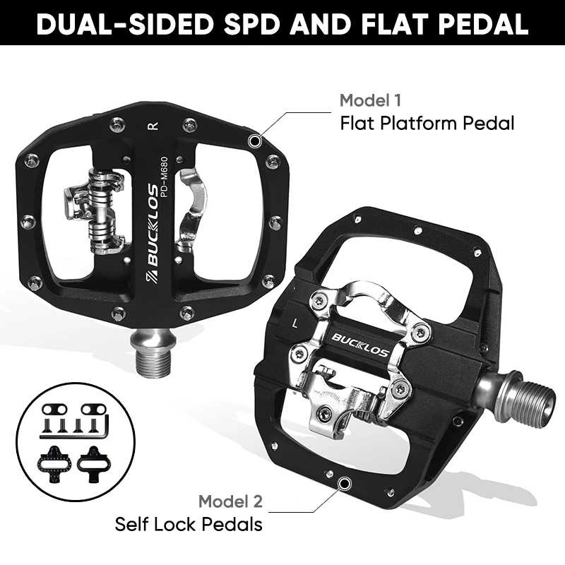 BUCKLOS Mountain Bike Pedals 3 Sealed Bearing PD-M680 Dual Clipless Flat & Lock Pedal Aluminum Cycling Pedals Fit Shimano SPD
