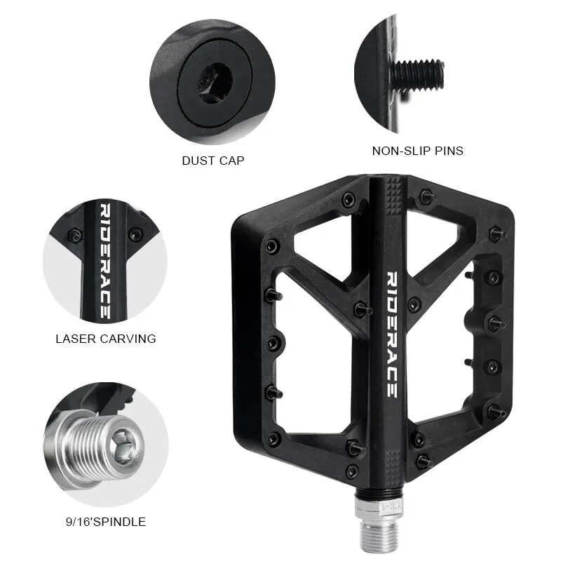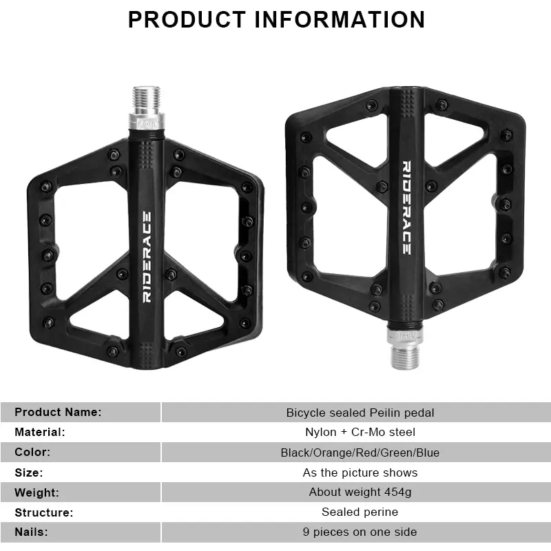 RIDERACE Bicycle Pedals Nylon Seal Bearings Ultralight Road BMX MTB Mountain Bike Pedal Flat Platform Anti Slip Cycling Parts