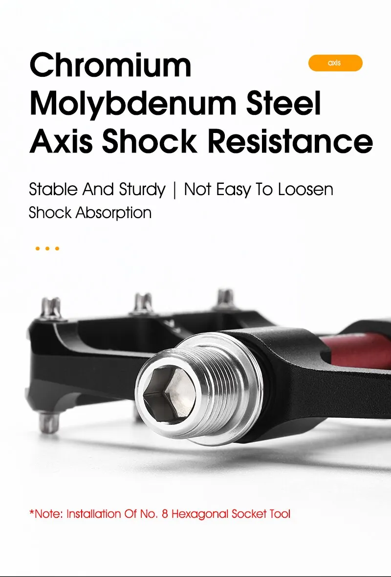 3.Excellent Grip: The pedals are equipped with stainless steel anti-skid nails on both sides to enhance the grip of the feet. The circular surface will not harm the shoes, and the anti-skid effect is better.