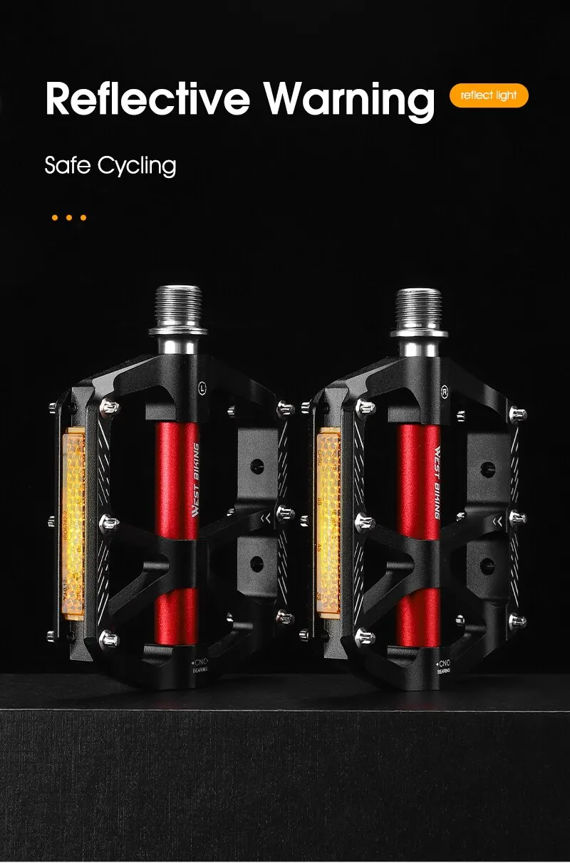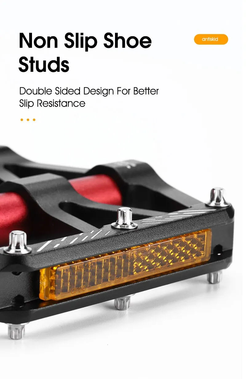 1.Safe And Durable: Made of high-quality aluminum alloy, CNC integrated molding process, high strength, wear resistance, lightweight, long service life. The pedals are equipped with reflective sheeting double sides, making it safer when cycling at night.