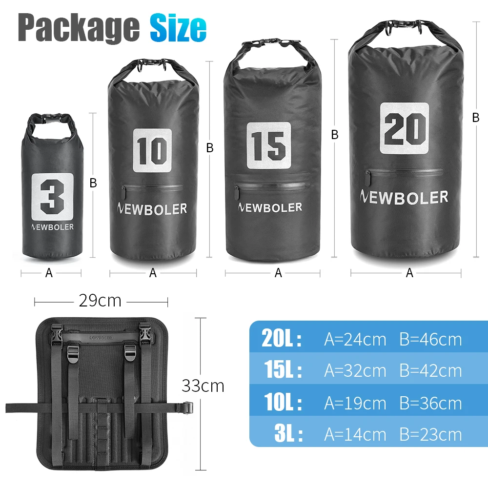 10/15/20 liter removable waterproof dry bag can completely protect the contents from rain and mud,