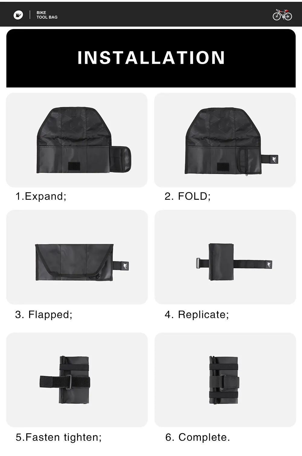 【Keep your tools organized】3 compartments, side zipper pocket and mesh pocket, reasonable put riding tools, easy to take in and out. Inside elastic rope to secure essential tools. This multipurpose tool pouch is easy to fold with 3 flaps, which are secured with two outside elastic strap to make sure that no tools will fall out.