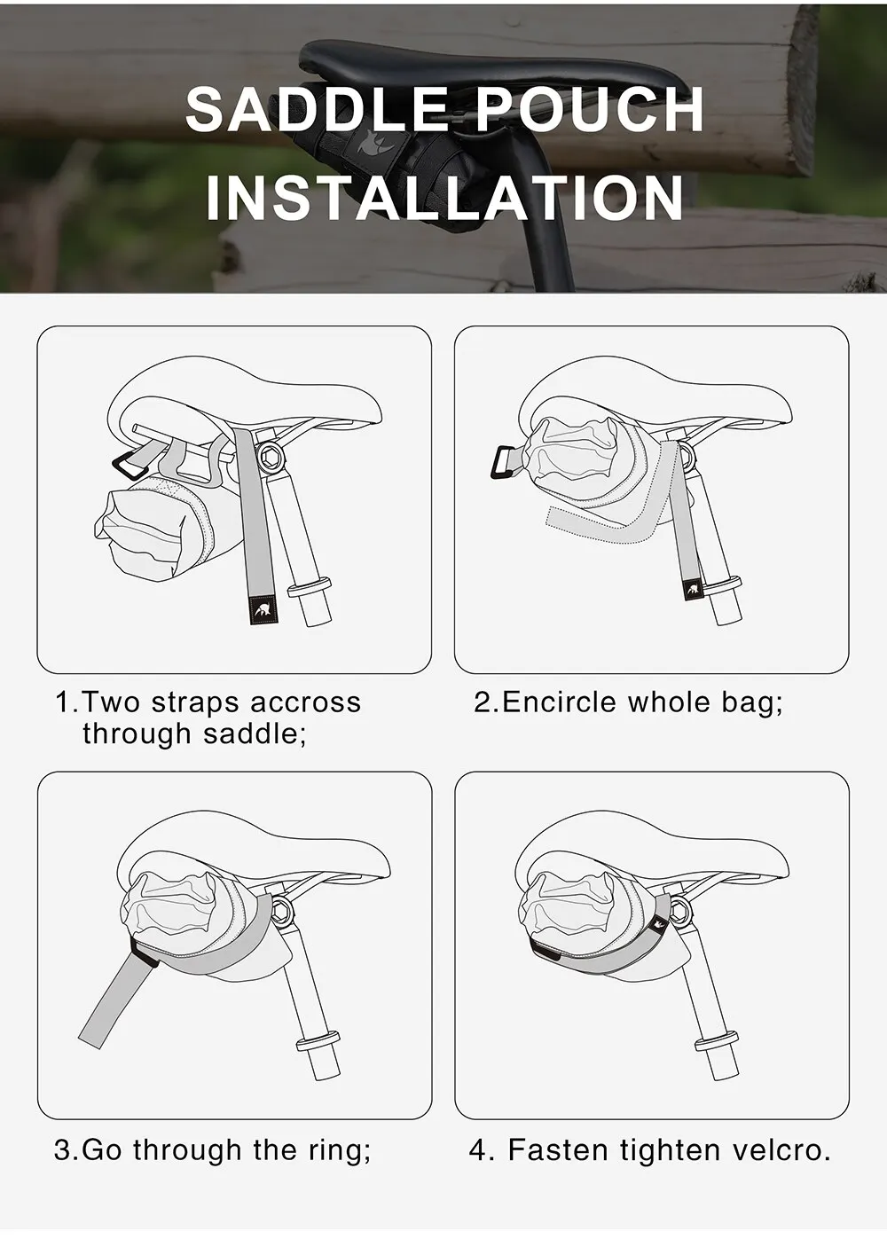 【Easy to install】Simply loop the strap around your frame and attach with hook and loop fastener. Easy to use and rock-solid. Fits in seconds.