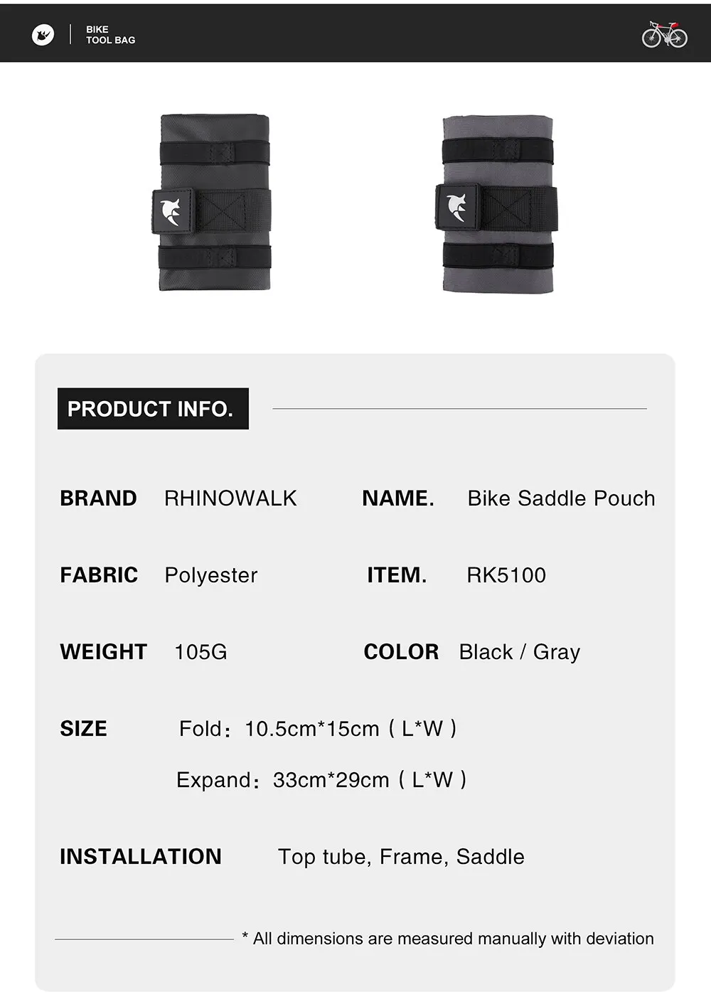 【Installation with multi postions】Access with different kind of bikes, can used as top tube bag, frame bag, saddle bag, etc.
