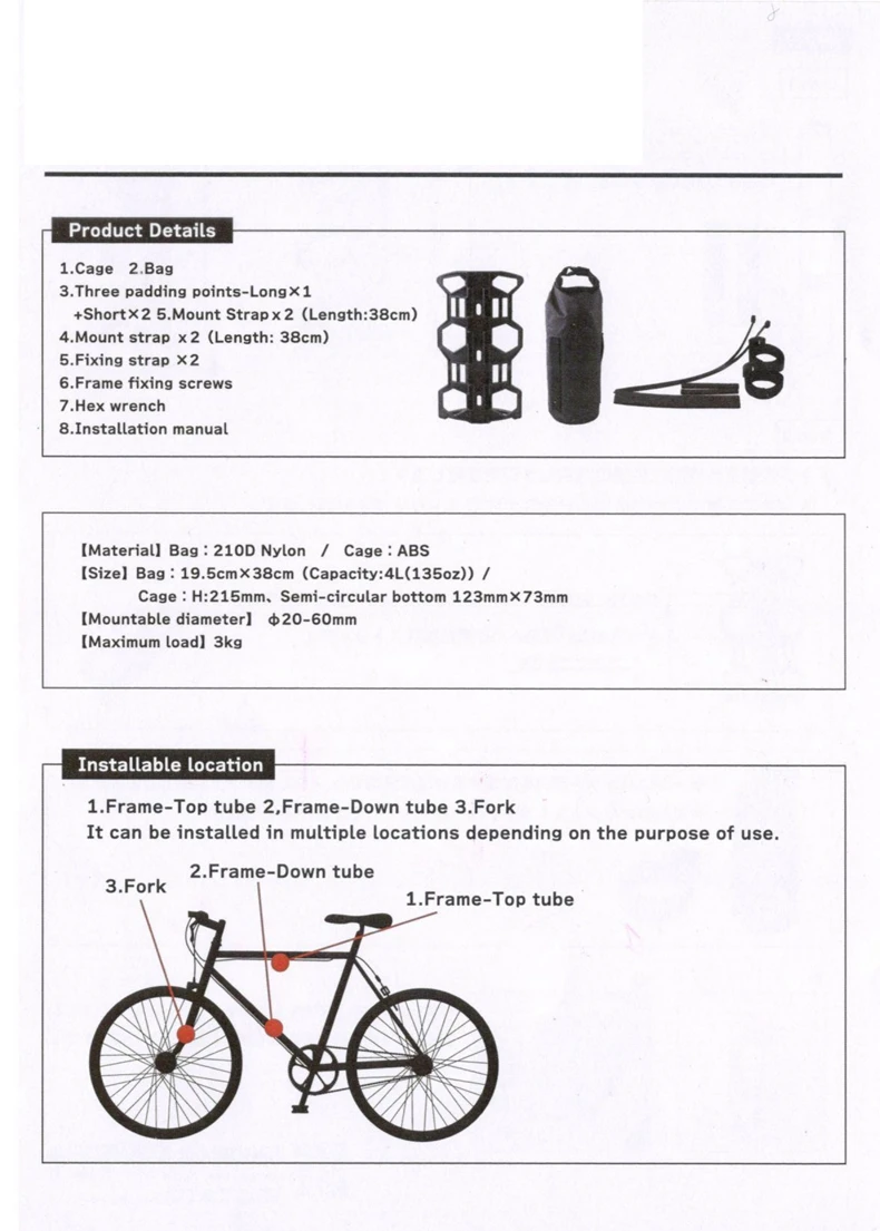 One Bag is Multi-Purpose, Creative and Multi-Functional. The Position of the Bag Can Be Changed According to the Riding needs, the Frame/Front fork/as a Water Bottle Holder.