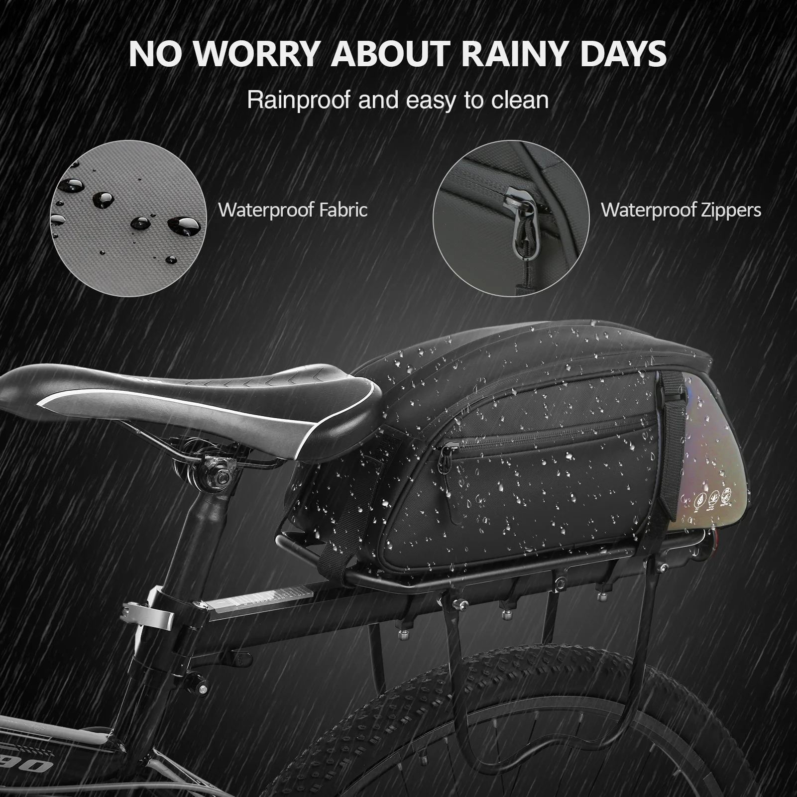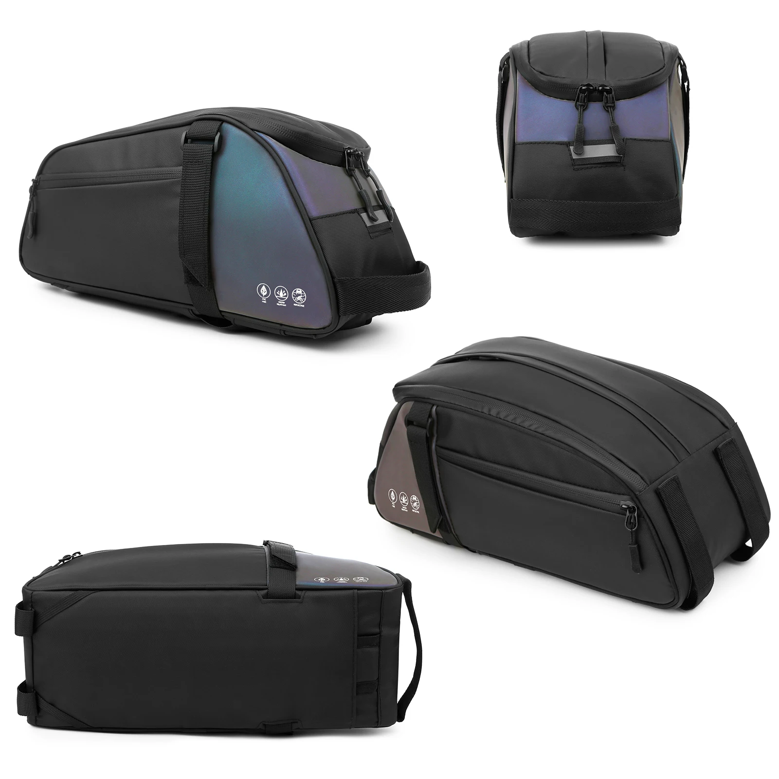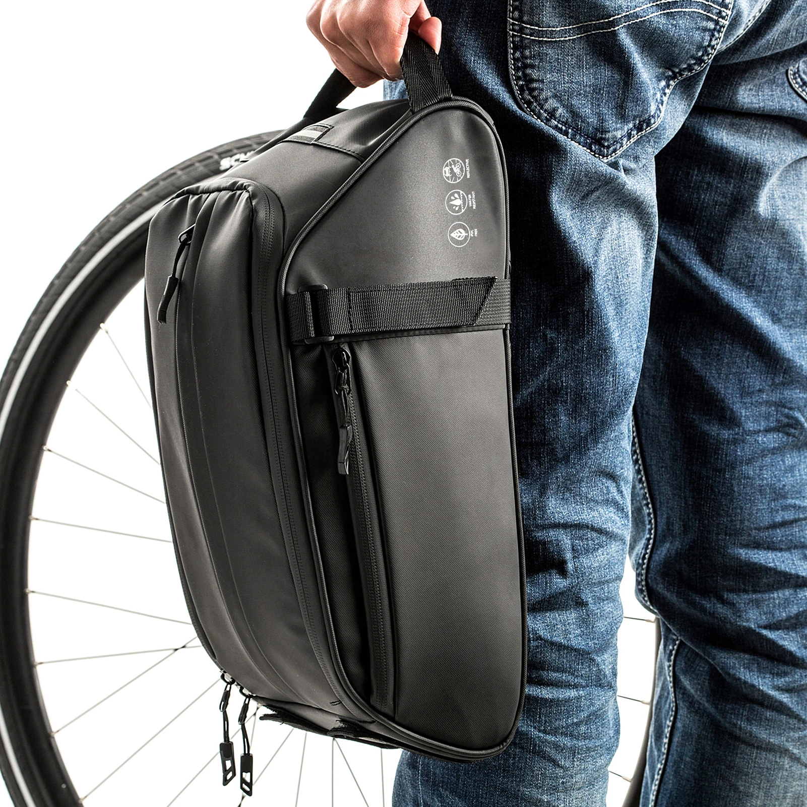 Multifunctional bag can be used as bike rear rack bag,carrying bag or shoulder bag.
