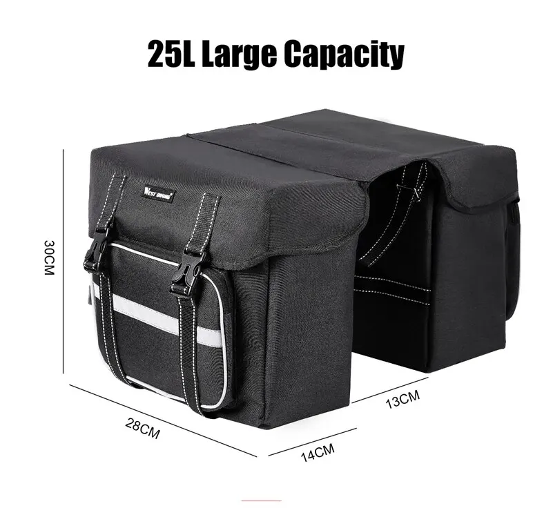 WEST BIKING Bicycle Rear Seat Bag 25L Large Capacity Outdoor Luggage Carrier Bags Cycling MTB Road Bike Trunk Double Pannier Bag-WAYBIKER