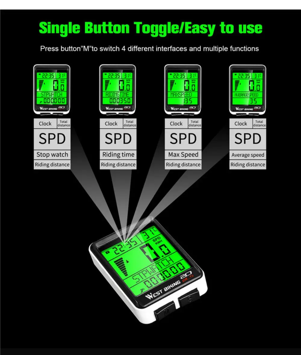 WEST BIKING Bicycle Cycling Computer Wireless Wired Waterproof Digital Bike Speedometer Odometer with Backlight Bike Stopwatch-WAYBIKER