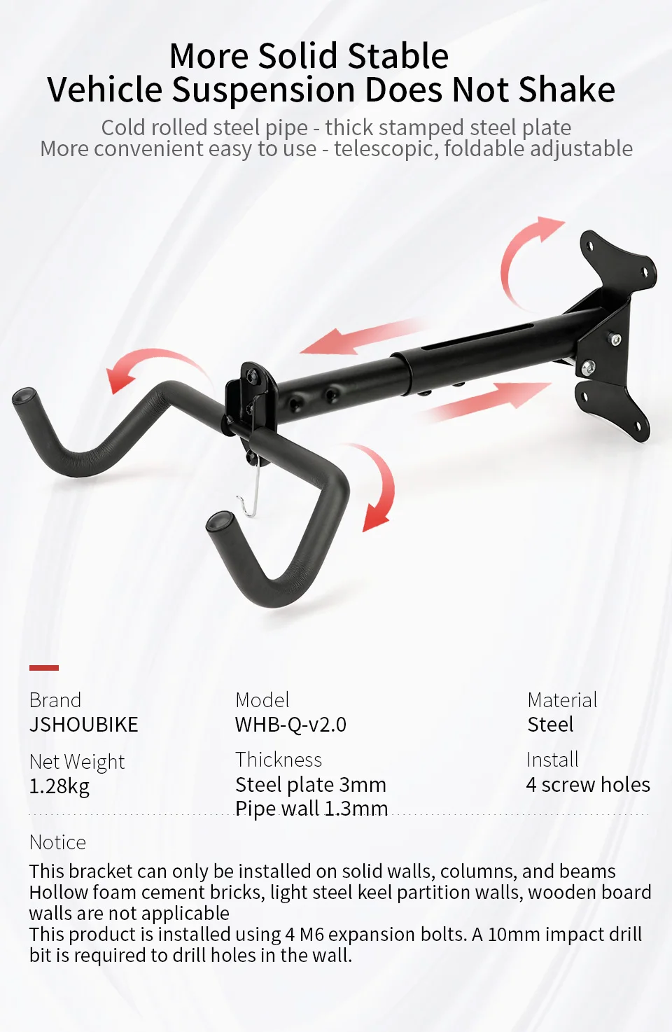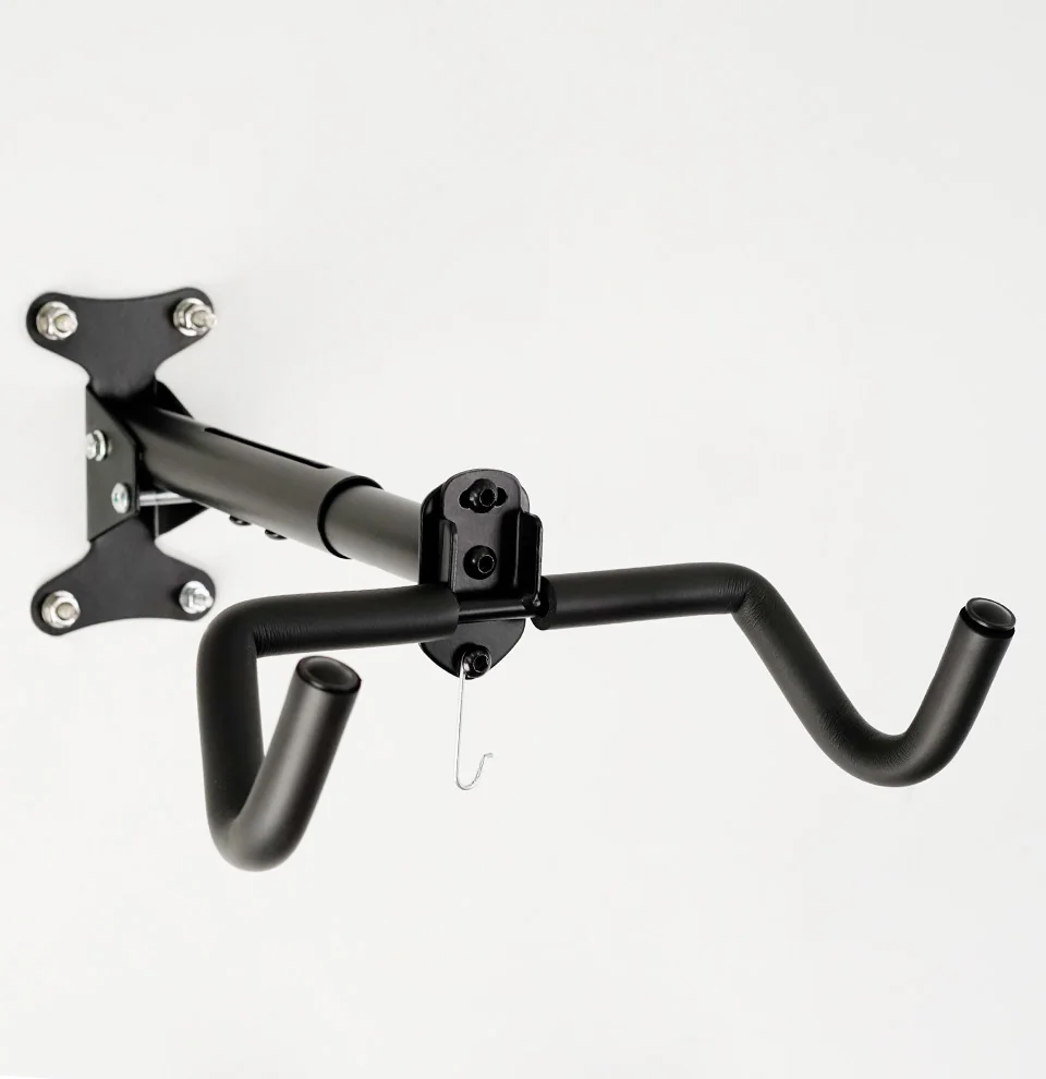【Adjustable】:The adjustable bike wall rack with extension length range 28.5-41.5CM,it can be applied to kids bikes,road bicycle,MTB by adjusting bike hanger bar.What's more,the bike hook will provide a suitable horizontally position by adjusting the arm's angle.