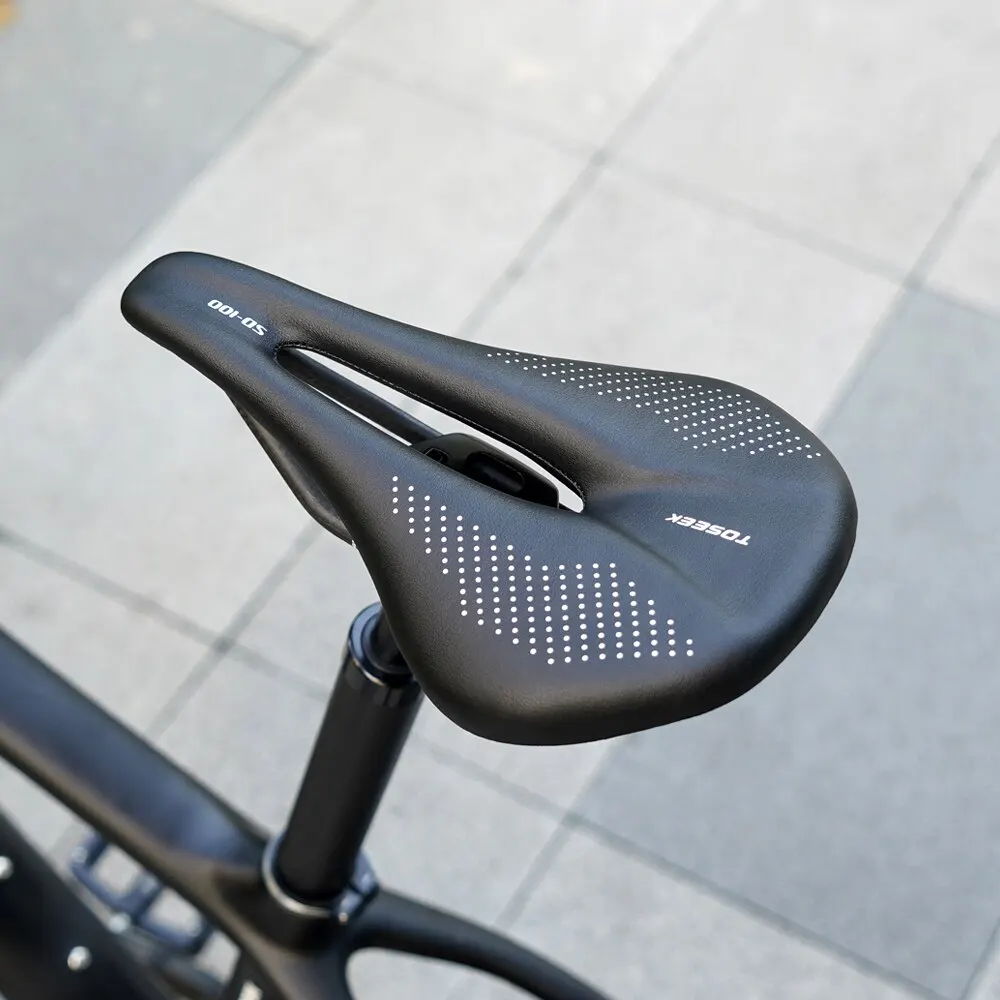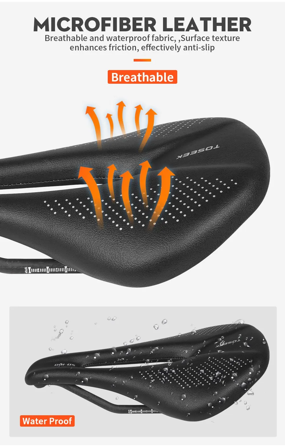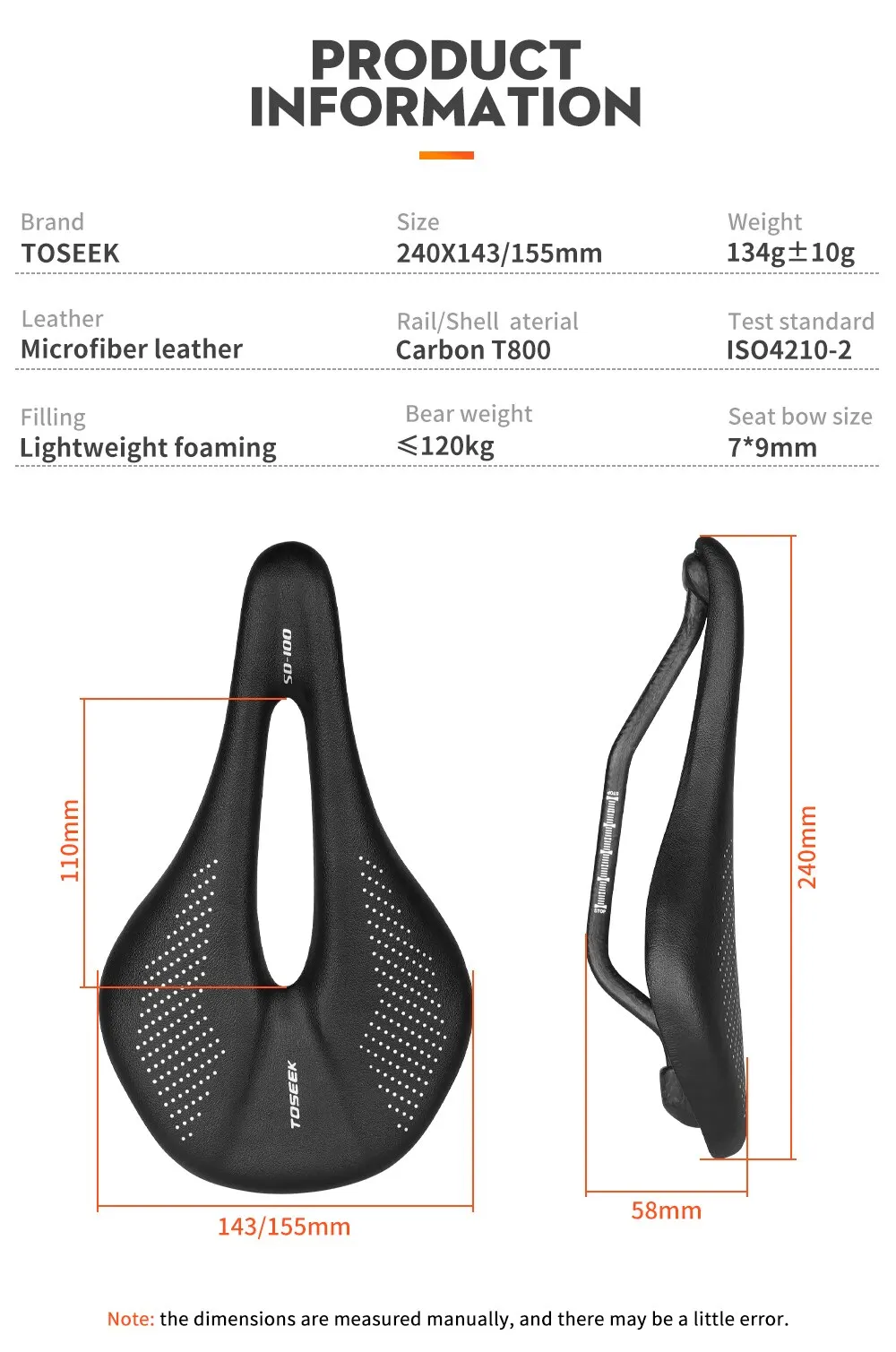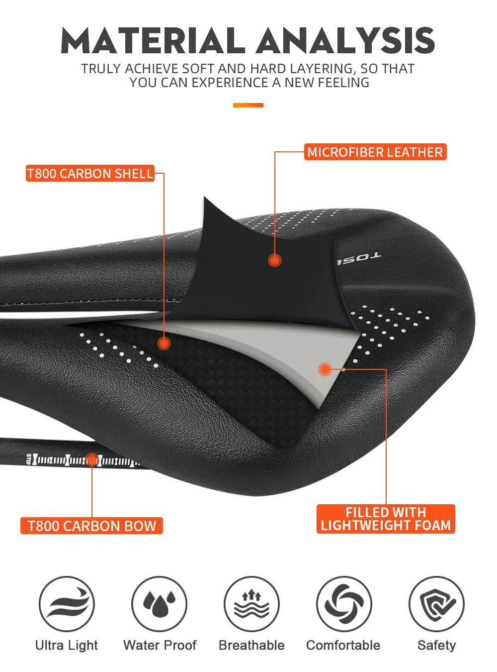 TOSEEK Full Carbon Saddle MTB/Road 143/155MM Bike Saddle Super Light Leather Carbon Cushions 135g Carbon Rails Bicycle Seat