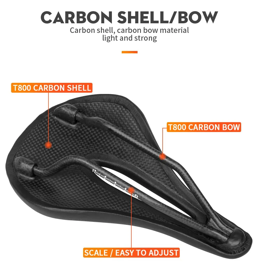 Both the saddle bottom shell and saddle bow are made of carbon fiber T800 material;