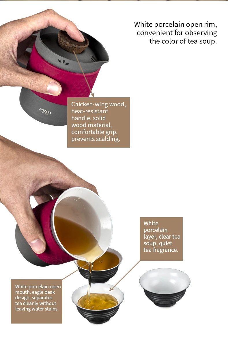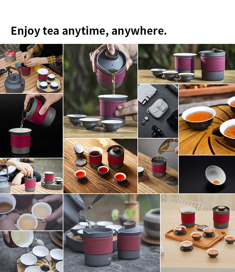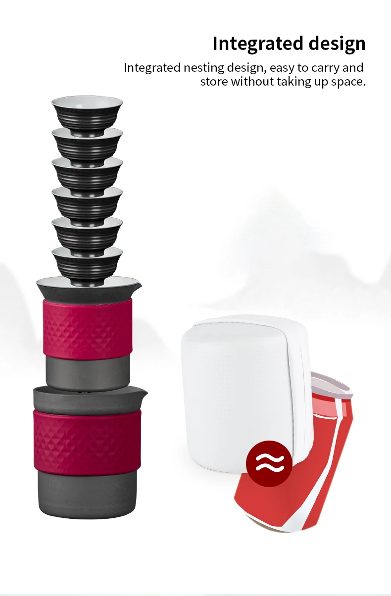 ALOCS TX-04 Travel Tea Set, Two Pot Six Cup Portable Retro Quick Cup Outdoor Kung Fu Tea Set-WAYBIKER